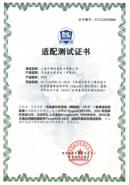 馬克威分析系統(tǒng)獲教育部信創(chuàng)適配測(cè)試證書(shū)
