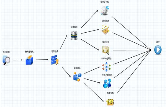 基于工作流的操作模式為用戶提供綜合集成化的解決方案,將數(shù)據(jù)讀取、數(shù)據(jù)處理、統(tǒng)計(jì)分析、數(shù)據(jù)挖掘、建立模型、預(yù)測(cè)分析及結(jié)果智能展現(xiàn)等業(yè)務(wù)流程集成于工作流中,提高工作效率,讓用戶集中精力處理核心業(yè)務(wù),更好地控制業(yè)務(wù)流程。構(gòu)建的業(yè)務(wù)流程以工作流文件的形式保存,可重新加載,提升了業(yè)務(wù)流程的復(fù)用性。